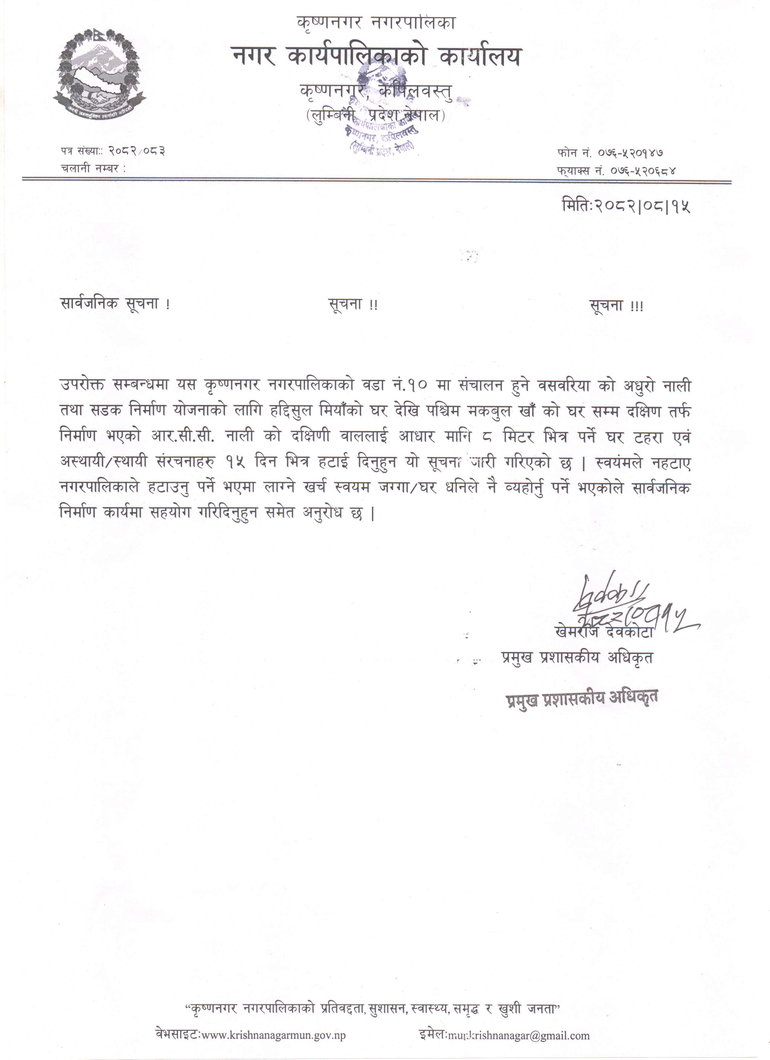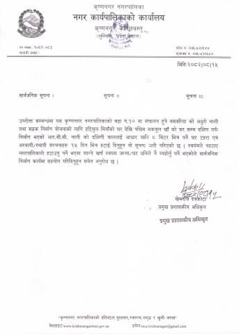 ||घर टहरा एवं अस्थायी/ स्थायी संरचनाहरु हटाउने सम्बन्धी सार्वजनिक सूचना ||