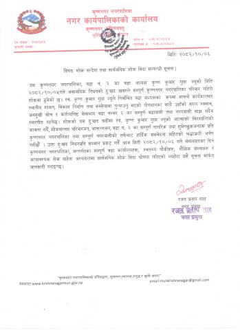 || शोक सन्देश तथा सार्वजनिक शोक बिदा सम्बन्धी सुचना ||